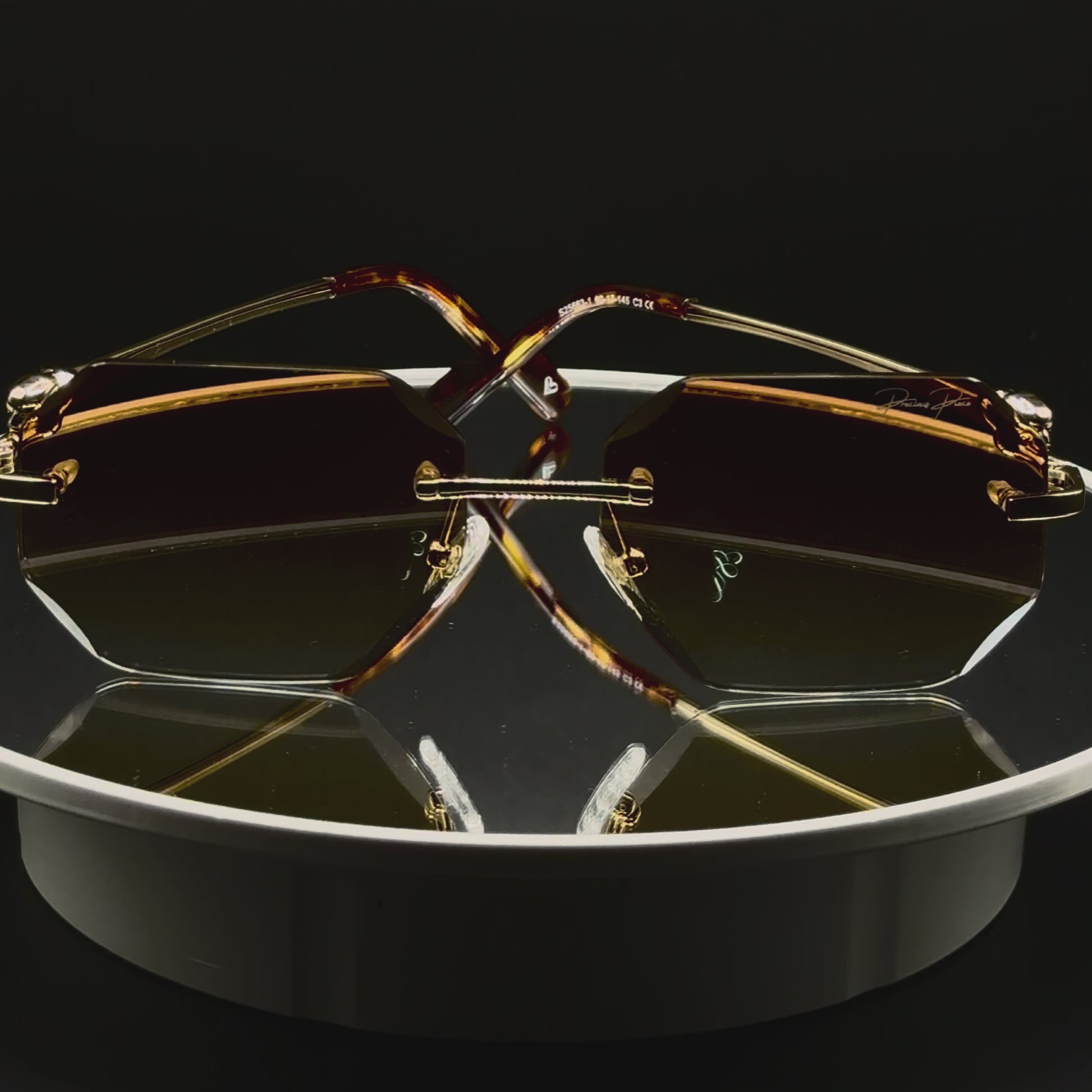 Make a statement without saying a word. The Royal Edge sunglasses are designed for those who lead with quiet confidence and sharp style. Featuring a sleek gold metal frame and stunning brown gradient lenses, this piece brings a perfect balance of edge and elegance.